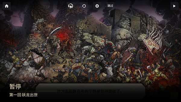 4、在进入关卡之前,会先播放一段剧情动画,玩家可以点击右上角的暂停按钮直接跳过该动画。