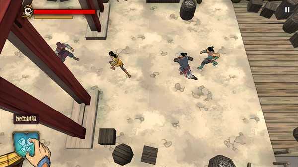 游戏采用俯视视角设计,玩家借助鼠标点击来操控角色移动——左键对应攻击功能,右键则是格挡键。在格挡状态下,系统会智能判定最具威胁的敌人攻击方向。随着剧情逐步展开,主角还能解锁双击左键触发翻滚、划动左键实现挡反等高阶战斗技能。其中,拳掌类型的攻击属于刚性输出,能够帮助角色积累橙色能量槽。
