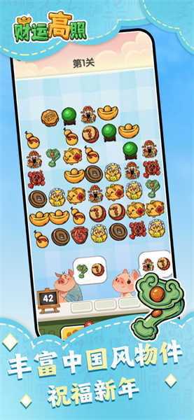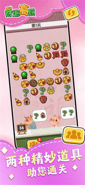 《财运高照》是一款轻松有趣的合成类游戏,它的玩法没有复杂的规则,也不存在让人困扰的难关,非常适合在各种空闲时间用来放松心情。不管是乘坐公交地铁的途中,还是午休的片刻时光,这款游戏都能让你轻松体验合成升级带来的乐趣。只需通过简单的手指操作,就能在愉悦的氛围里不断提升物品的等级,还能收获丰厚的奖励和意外的惊喜。