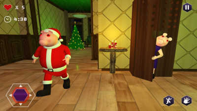 这只装扮成圣诞老人的恐怖小猪,表面上是来送礼物的,可实际上却异常危险,攻击力和伤害力都很强。玩家得小心躲避它的追击,仔细搜寻每个房间,找到关键的线索和道具,才能成功逃出这里,千万别被它的伪装骗了!快来游戏里挑战,打败这只恐怖的圣诞老人小猪吧!