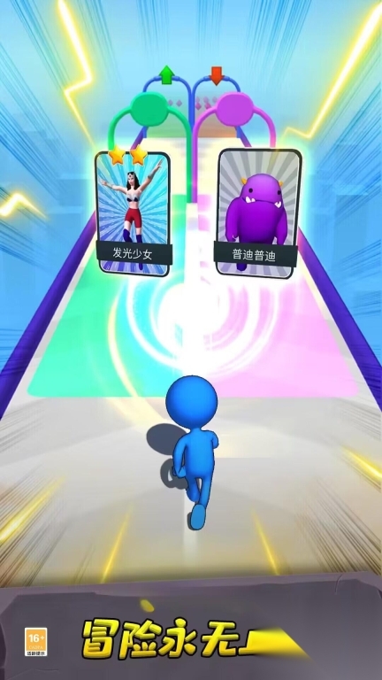 3、橡皮人能解锁各式各样的搞笑皮肤,夸张的变形动画让跑酷过程充满更多乐趣。