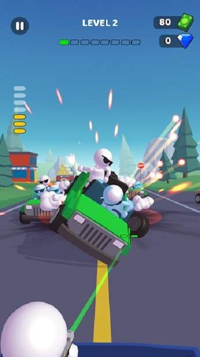 这款游戏不仅画质高清,玩法也充满创意。玩家将操控橡皮人驾驶汽车,在被后方车辆追逐的过程中,需要在两车相撞前将对方车辆射击摧毁,顺利抵达终点即可解锁下一关!