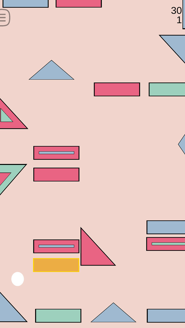 这是一款简约风格的小球闯关游戏。游戏内设有丰富多样的多边形障碍物,玩家需操控小球完成关卡挑战。独特的技能机制让游戏充满别样趣味,快来解锁子弹时间的奥秘吧!当你触碰屏幕时,小球便会进入子弹时间状态,其移动方向将随你手指点击的位置而改变。其中,红色标记代表数值0(能吸收所有能量),绿色标记对应数值1(即0.9,为真实值),蓝色标记则关联芭蕾技能——若条件允许,你每秒都可使用该技能,但每个子弹效果存在约一秒的时间限制。精准的微操作或许能让你的小球飞得更高哦。