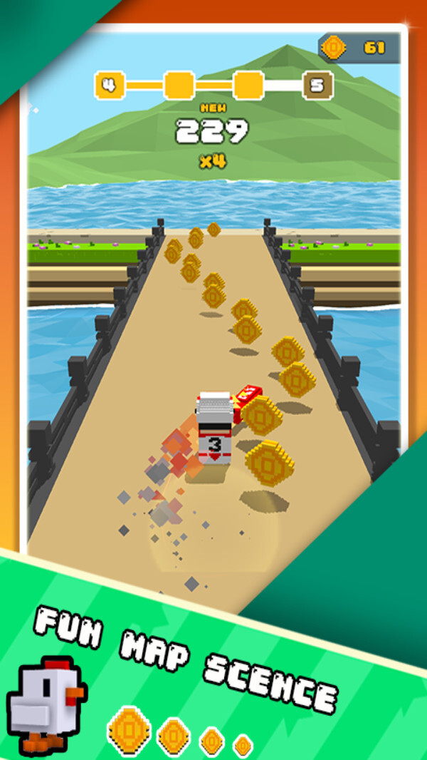 3、路上会出现不少金币,你要灵活移动,把它们都收集起来。