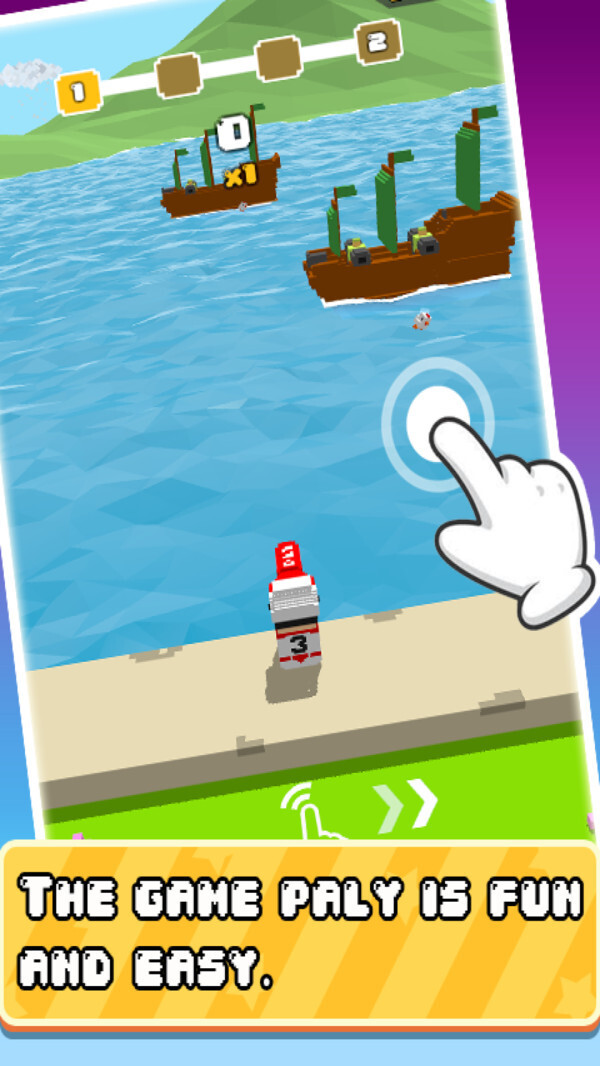3、操控小船持续左右移动并发射炮弹,阻挡敌人的各类危机道具,需要灵活的操作技巧;